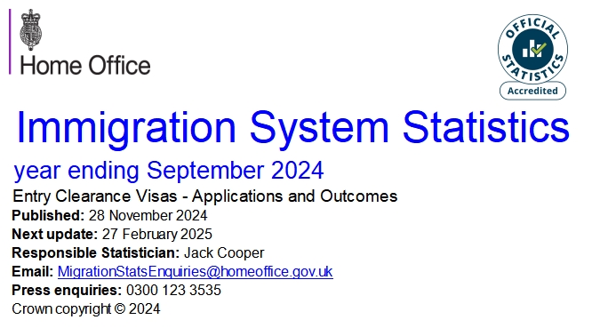 英國2024年第三季度簽證數(shù)據(jù)發(fā)布!我國工簽申請(qǐng)量及獲批量均增加!